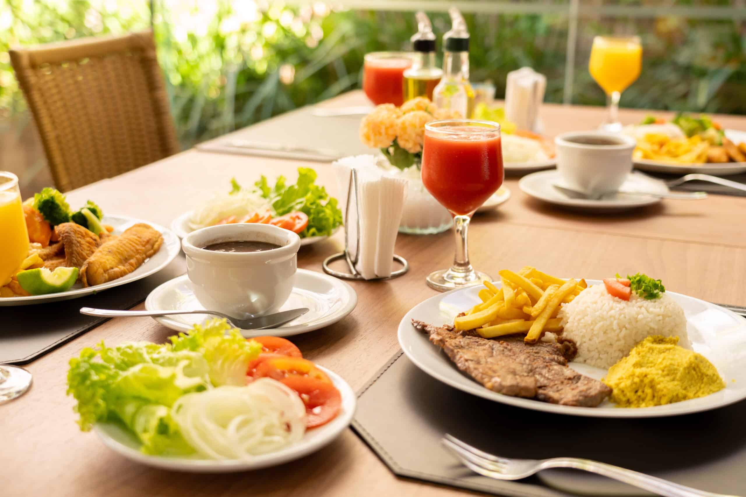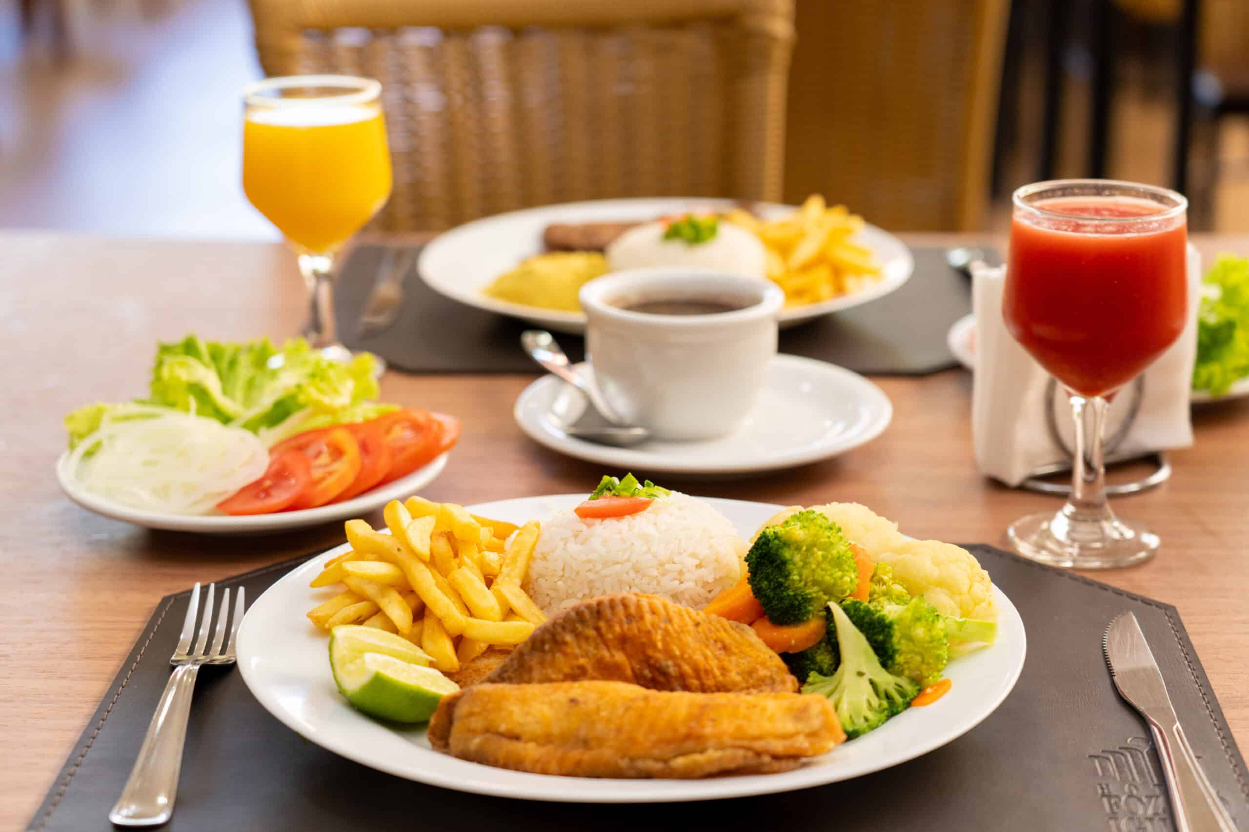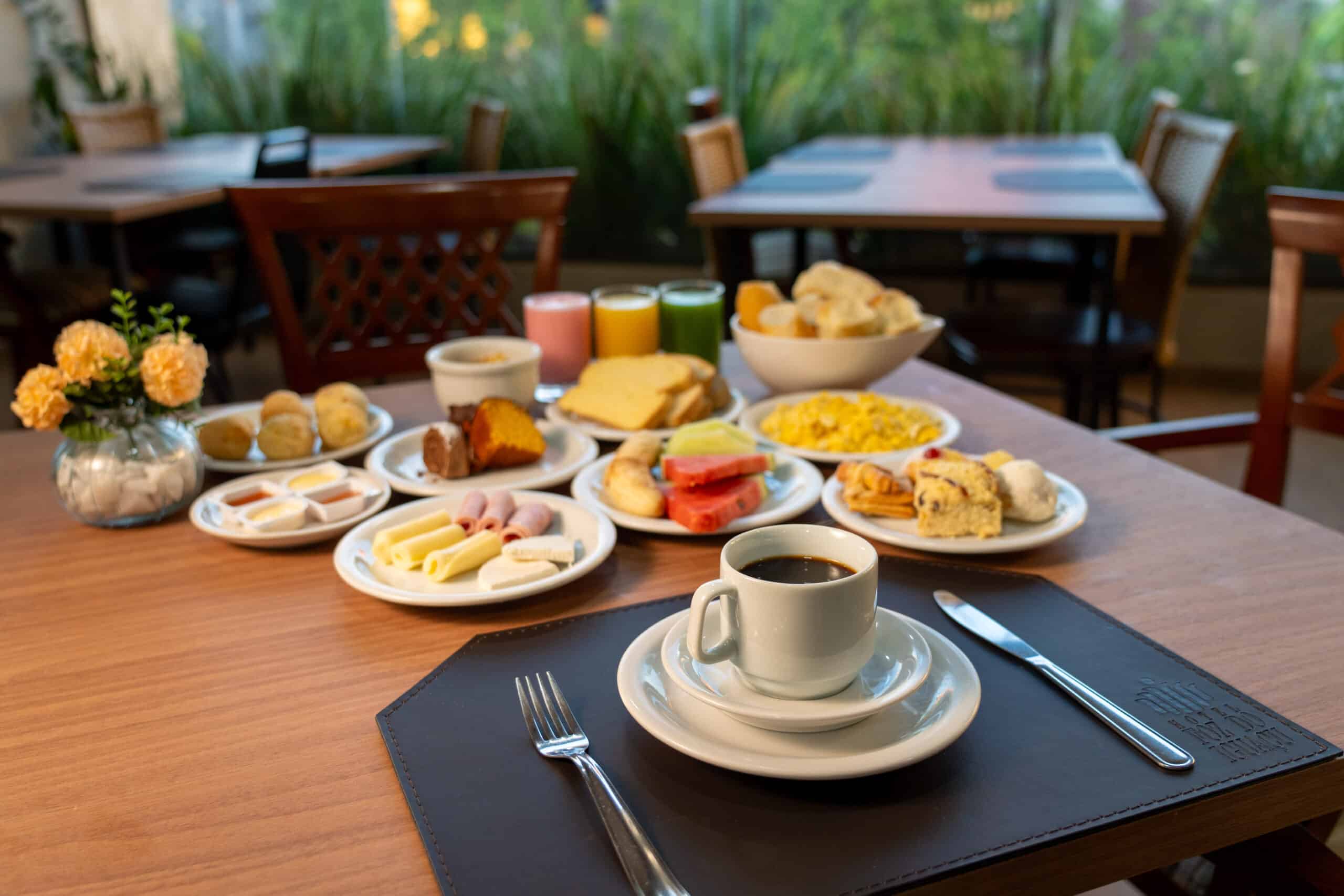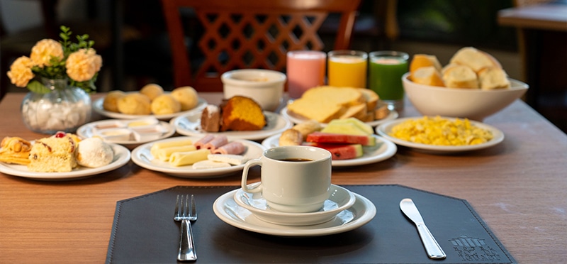 Nosso café da manhã é um dos destaques da casa uma refeição completa e preparada com carinho na nossa própria padaria, com frutas frescas, sucos naturais, pães e bolos feitos diariamente.